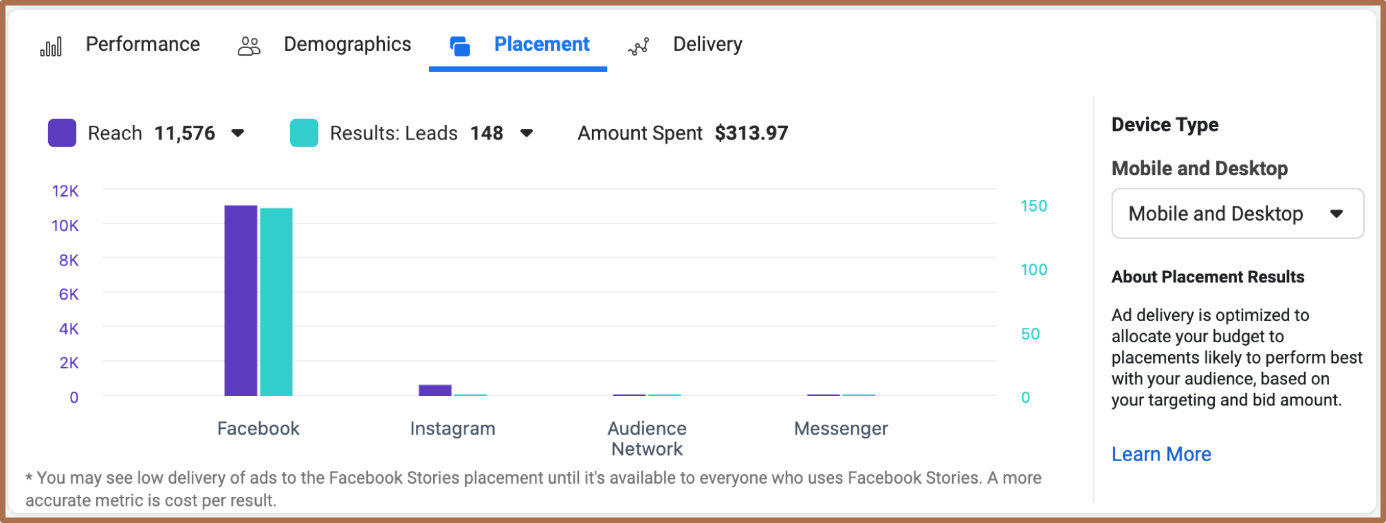 Placement: Manual Placement = Instagram Stories