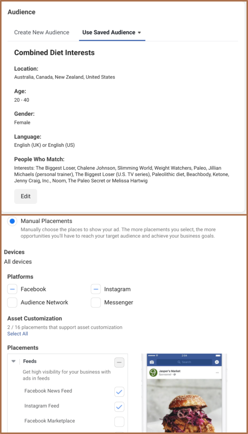 Placement: Manual Placement - Facebook Feed + Instagram Feed