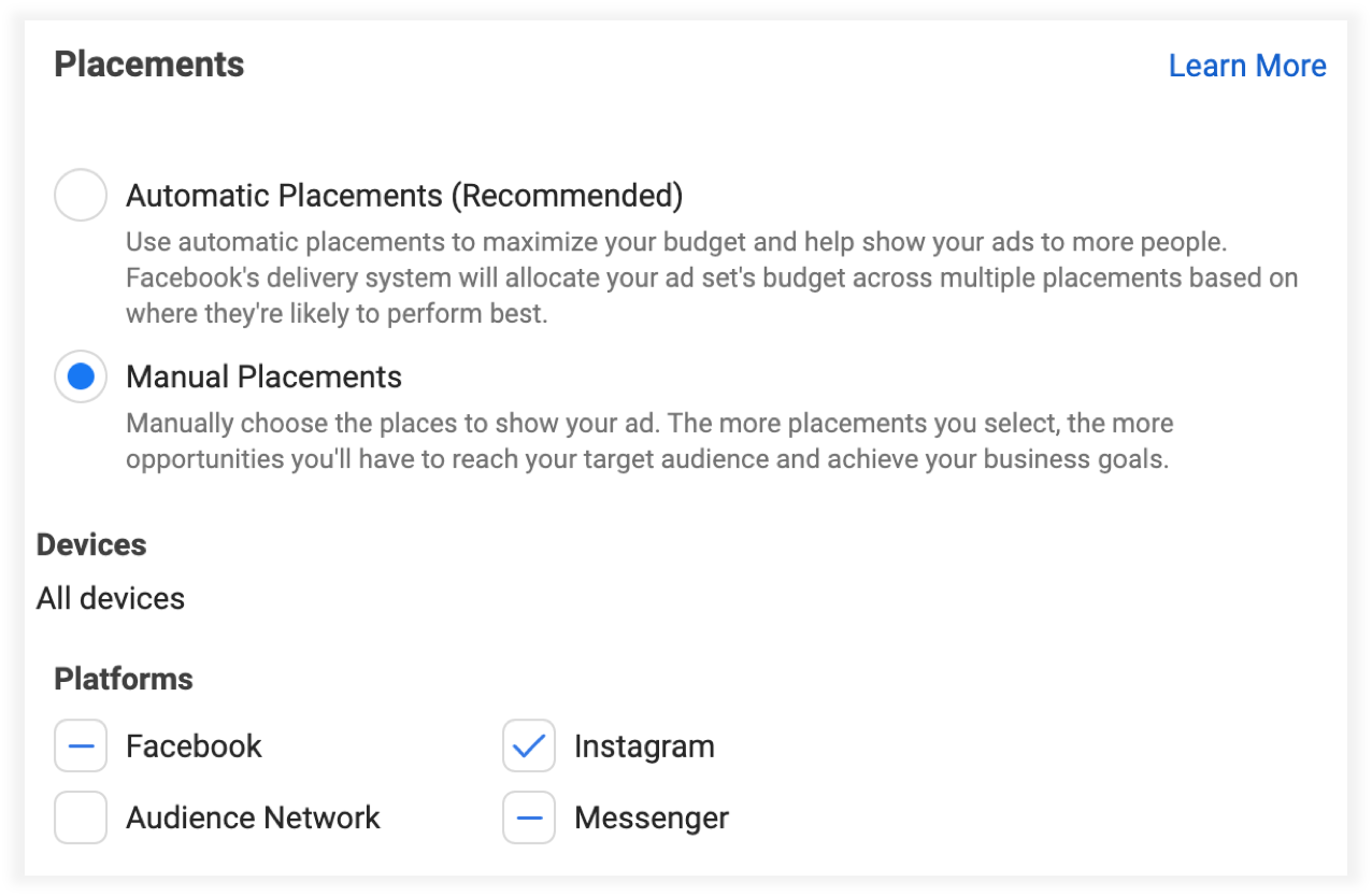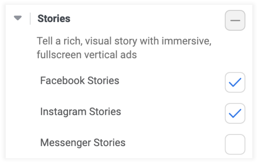 Feeds: FB News Feed, Instagram Feed, FB Video Feeds, Instagram Explore, FB Groups Feed, FB Stories, Insta Stories, Messenger Stories, In-Article, Search