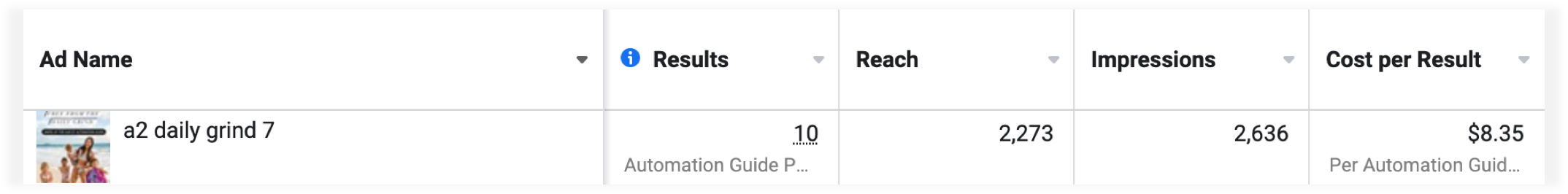 We just started running our Automation Guide campaign for the first time this month! Unfortunately, all of our Automation Guide ads are still in the learning phase, so we ran a TON of individual ads at a very low adspend. Over time we will scale the winners and turn off the losers, but we started by casting our net wide!