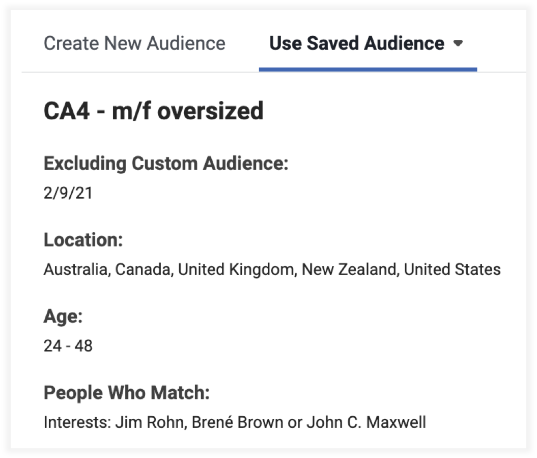 Detailed Targeting: Interests: Jim Rohn, Brene Brown or John C Maxwell